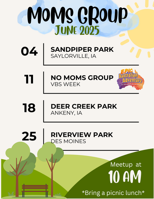 Wednesdays at 10:00am in the Fellowship Hall/Preschool area! Enjoy fellowship with other moms and let the children have some playtime with other kiddos.